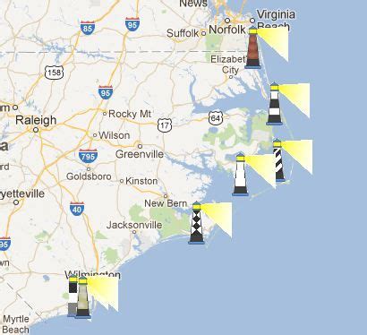 Nc Lighthouses Map . The cape hatteras lighthouse is normally open from the third friday in april through columbus day in october. In 1955, it was moved to edenton as a private residence.