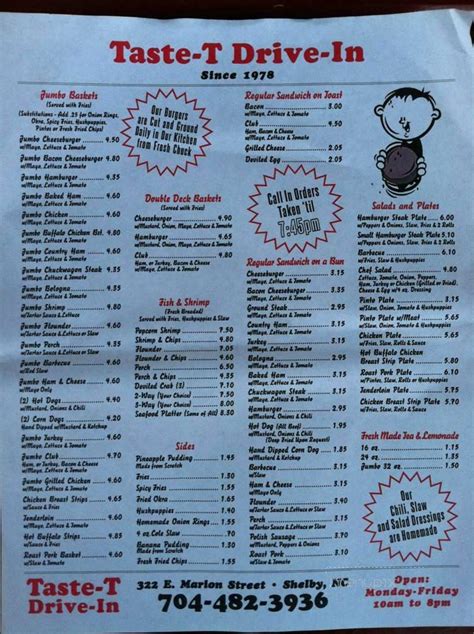 Online Menu of TasteTDriveIn, Shelby, NC from www.menupix.com